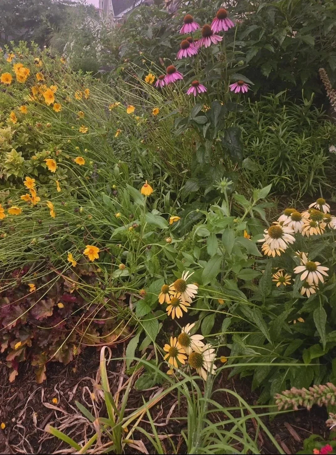 Installation of a mixed border using client-requested plants and ecological alternatives.